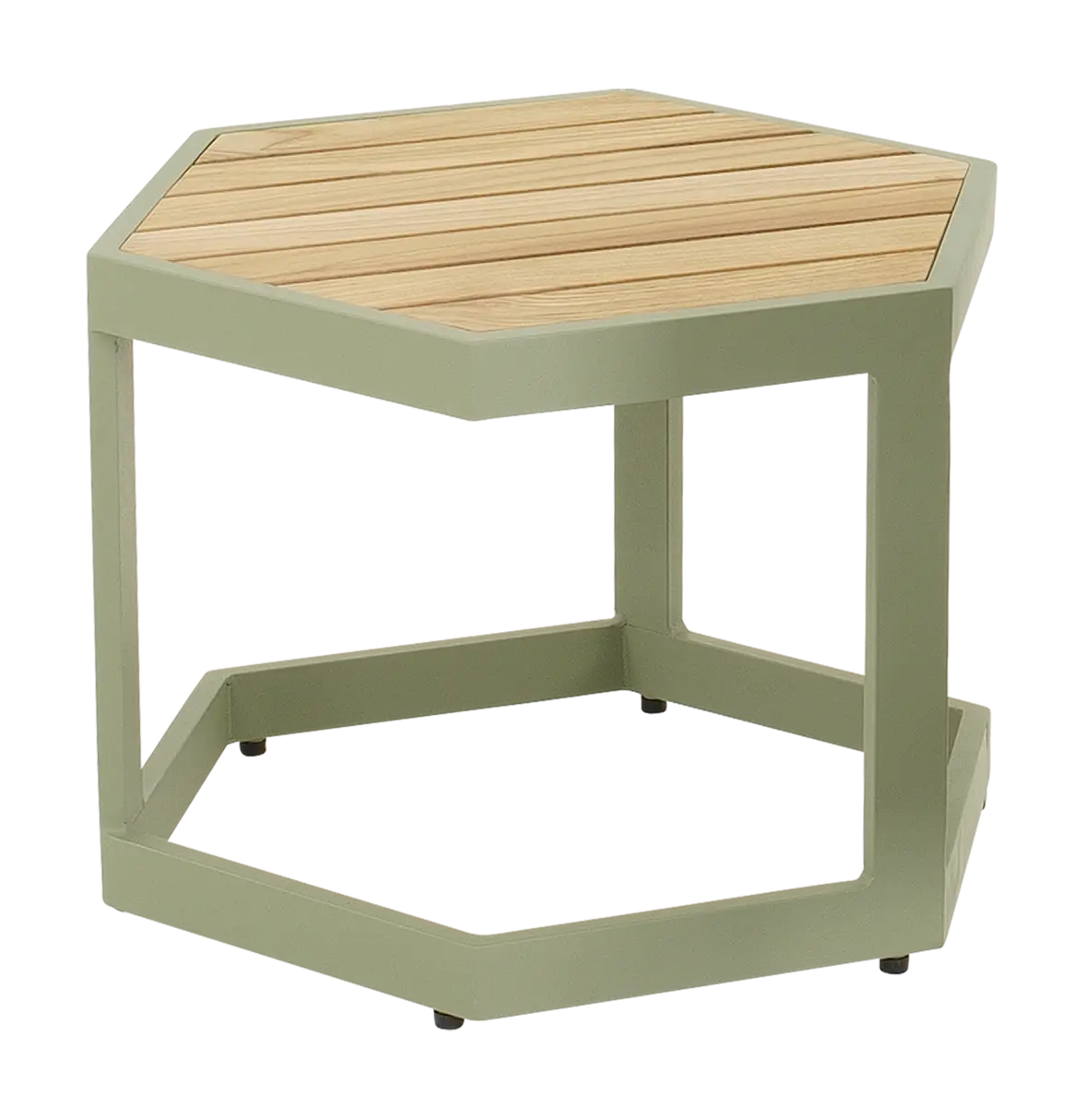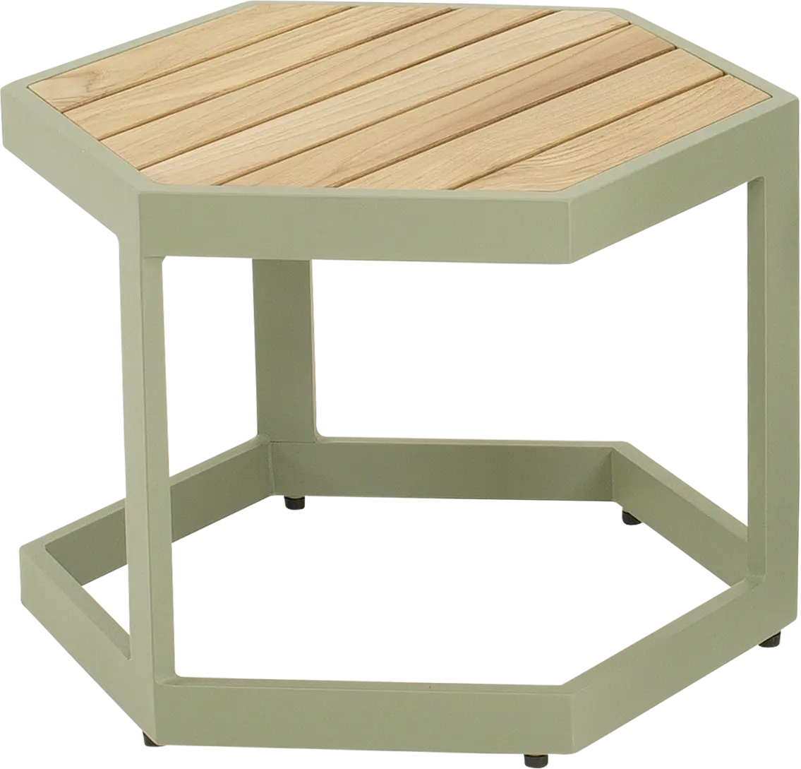 48x41,5x34 cm | Aluminium frame mat zacht groen | Bovenkant: teakhout | Maximale draagkracht: 25 kg