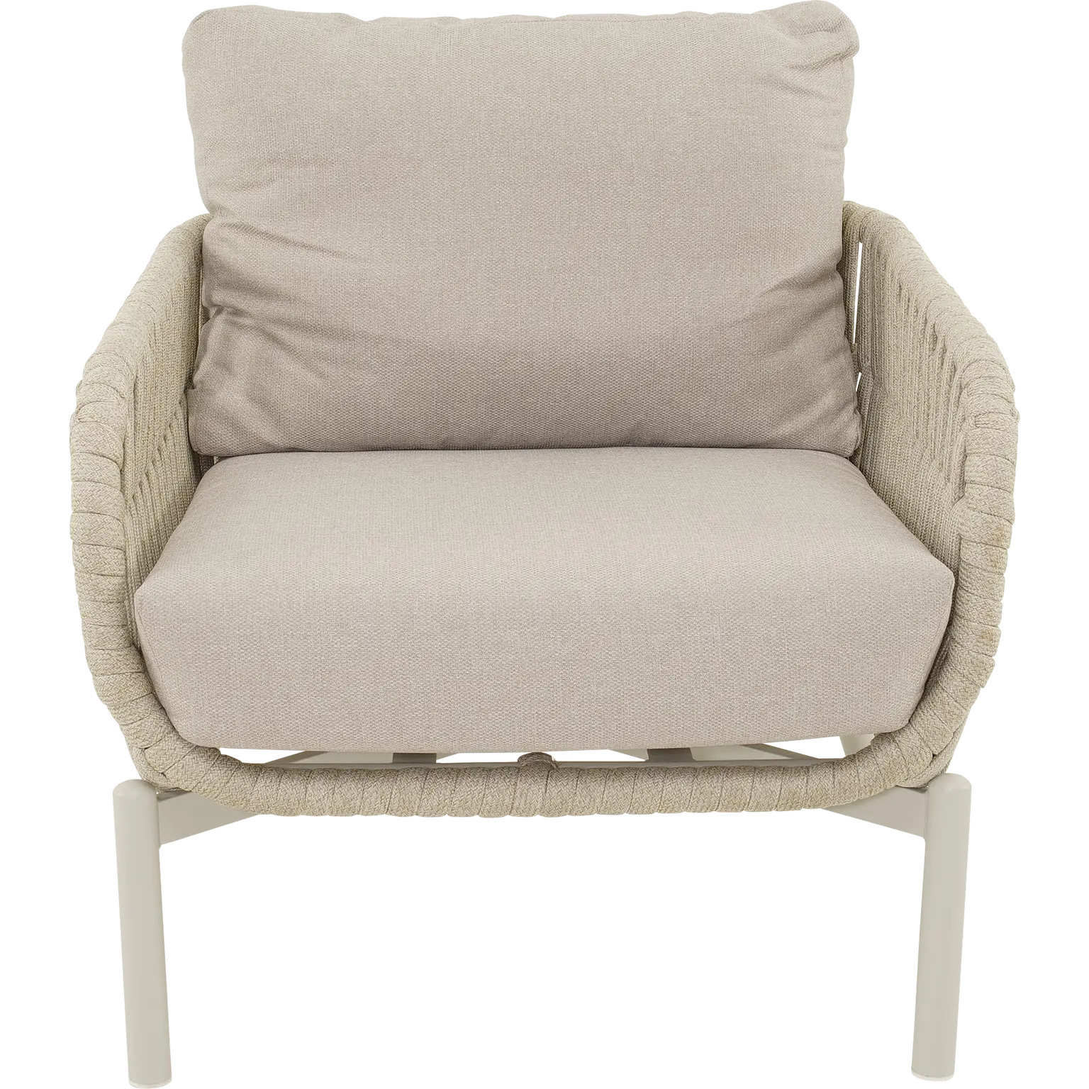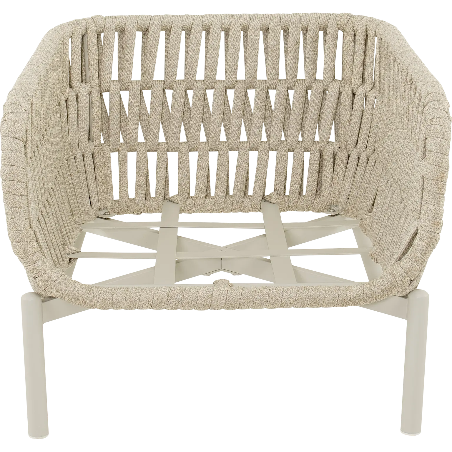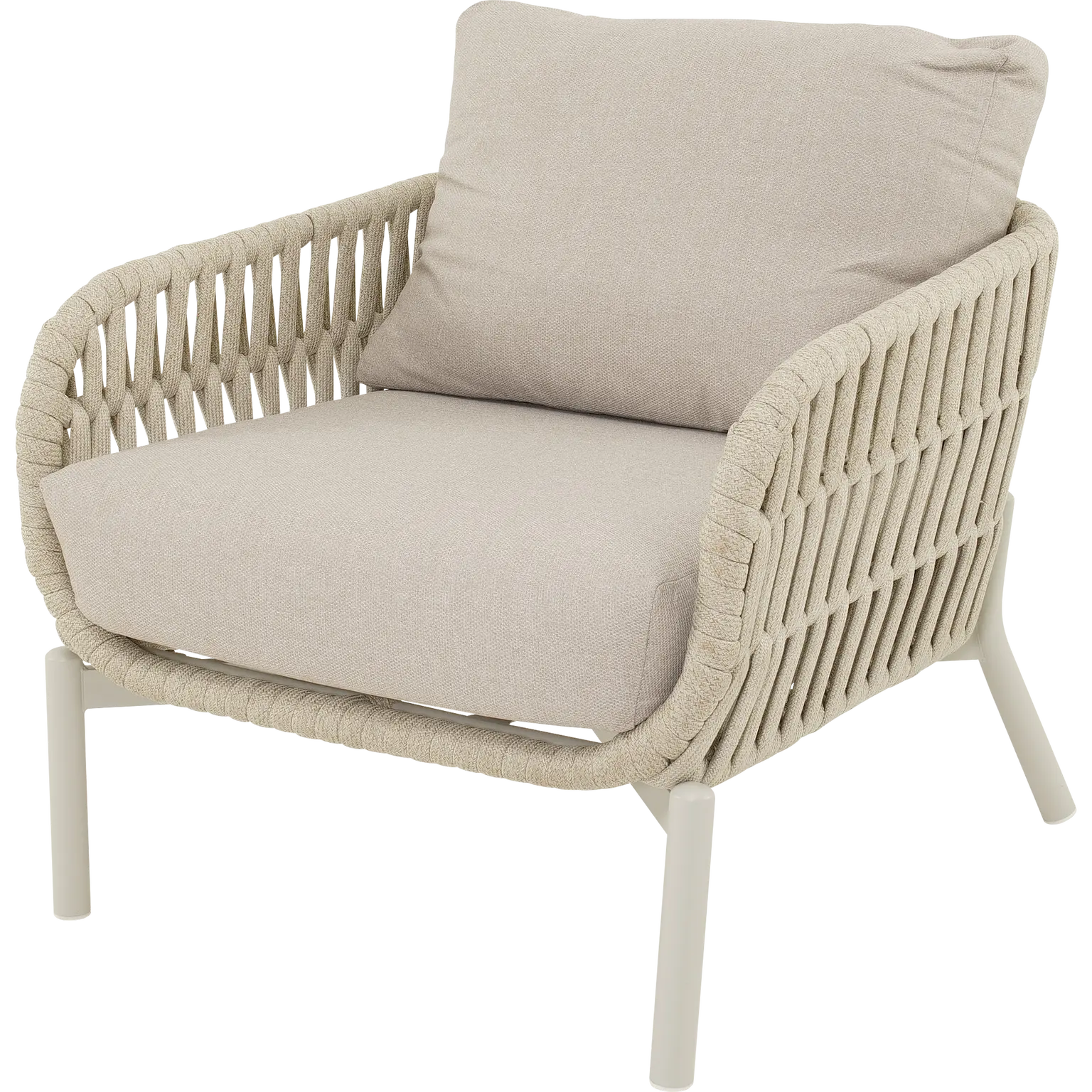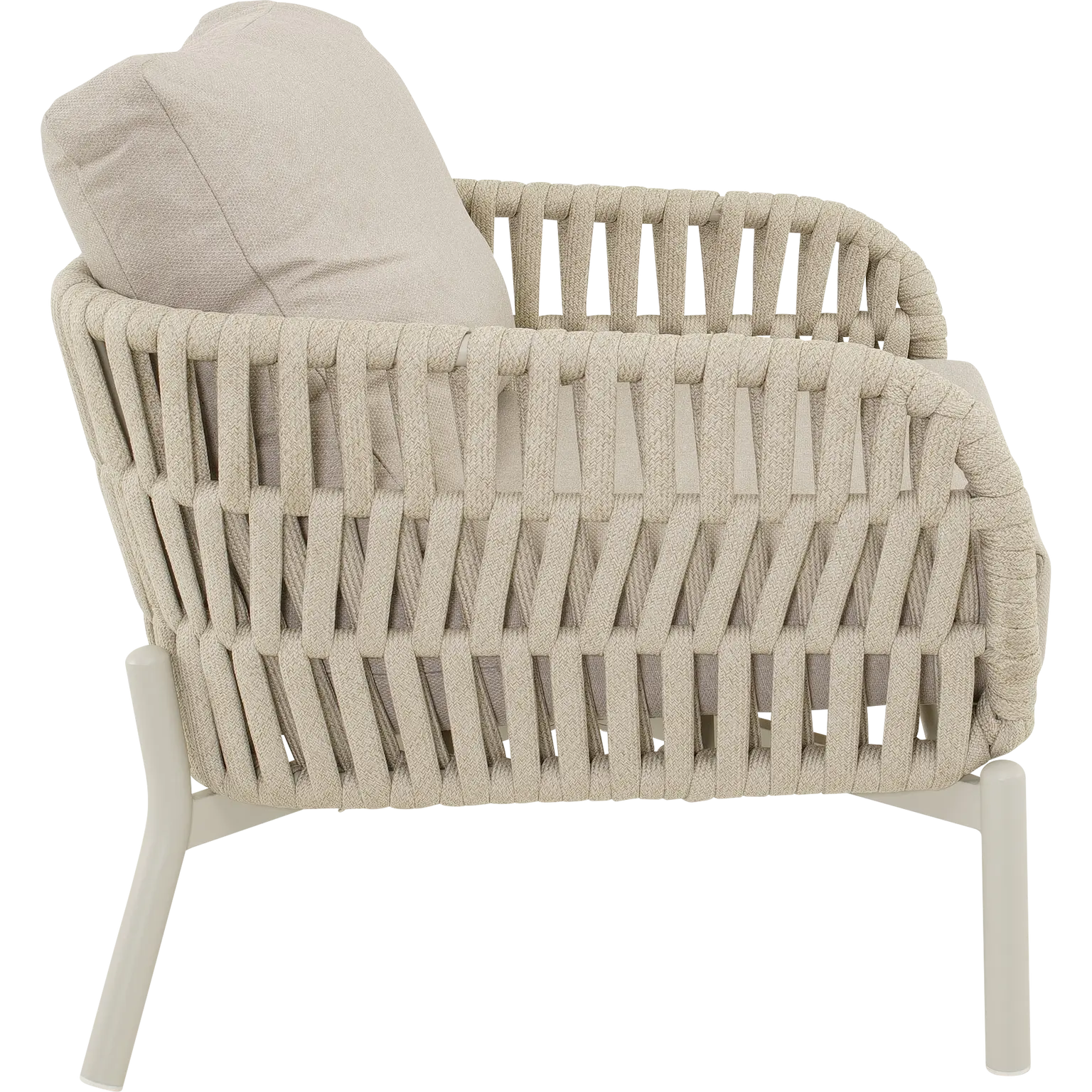 80x84x66,5cm | Aluminium frame mat beige | 370gr/m² olefine kussen | 30x16mm platte koord kleur beige | Max. draaggewicht: 140kg