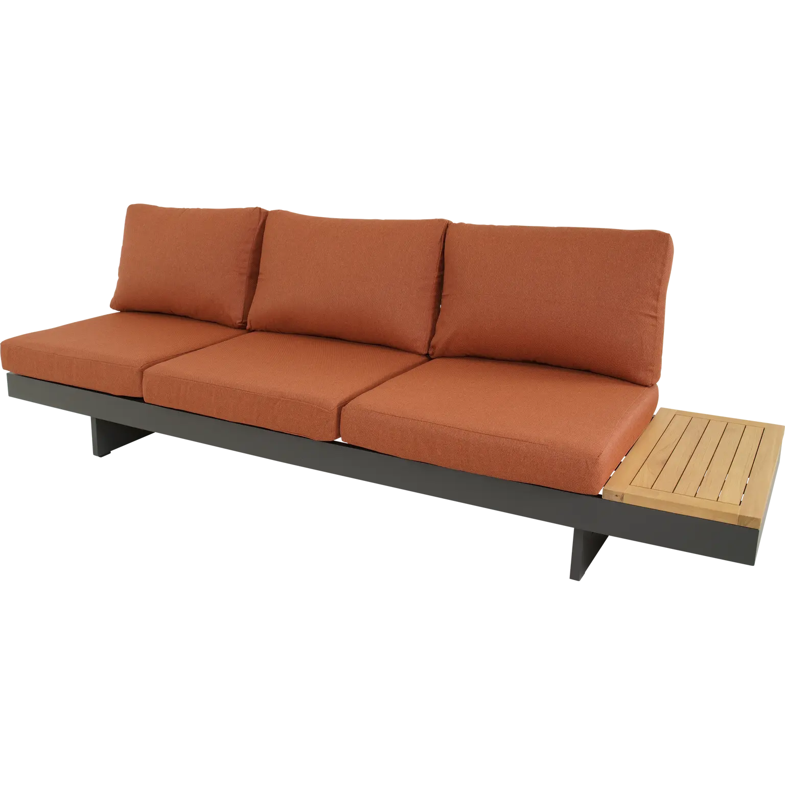 Met ligstoel functie | 3-zits 245x71x70cm | Tafel 140x70x28cm | "N" stijl tafel 80x40x36cm | Aluminium frame mat antraciet | 277gr/m² olefin kussen | FSC teakhout
