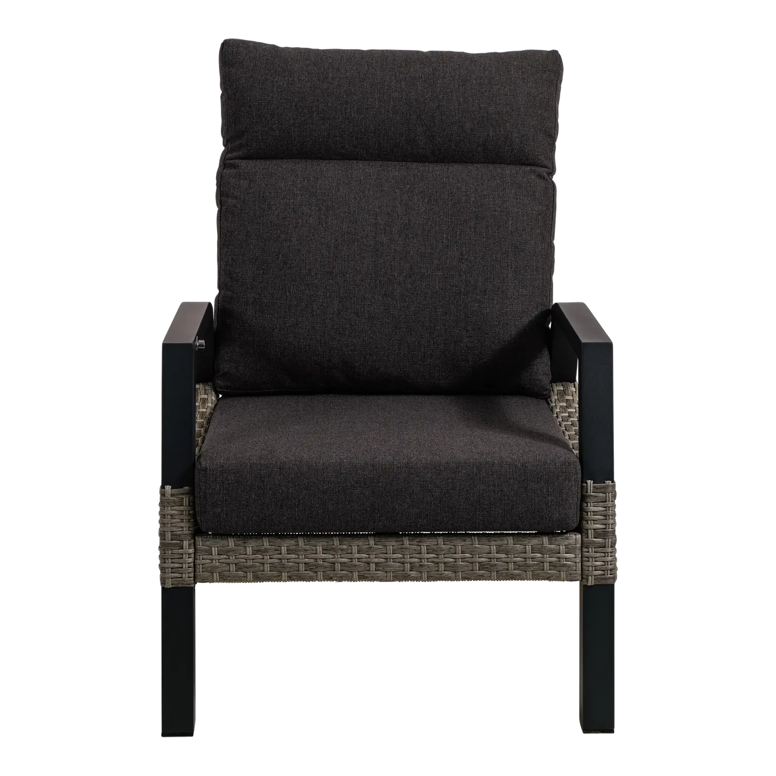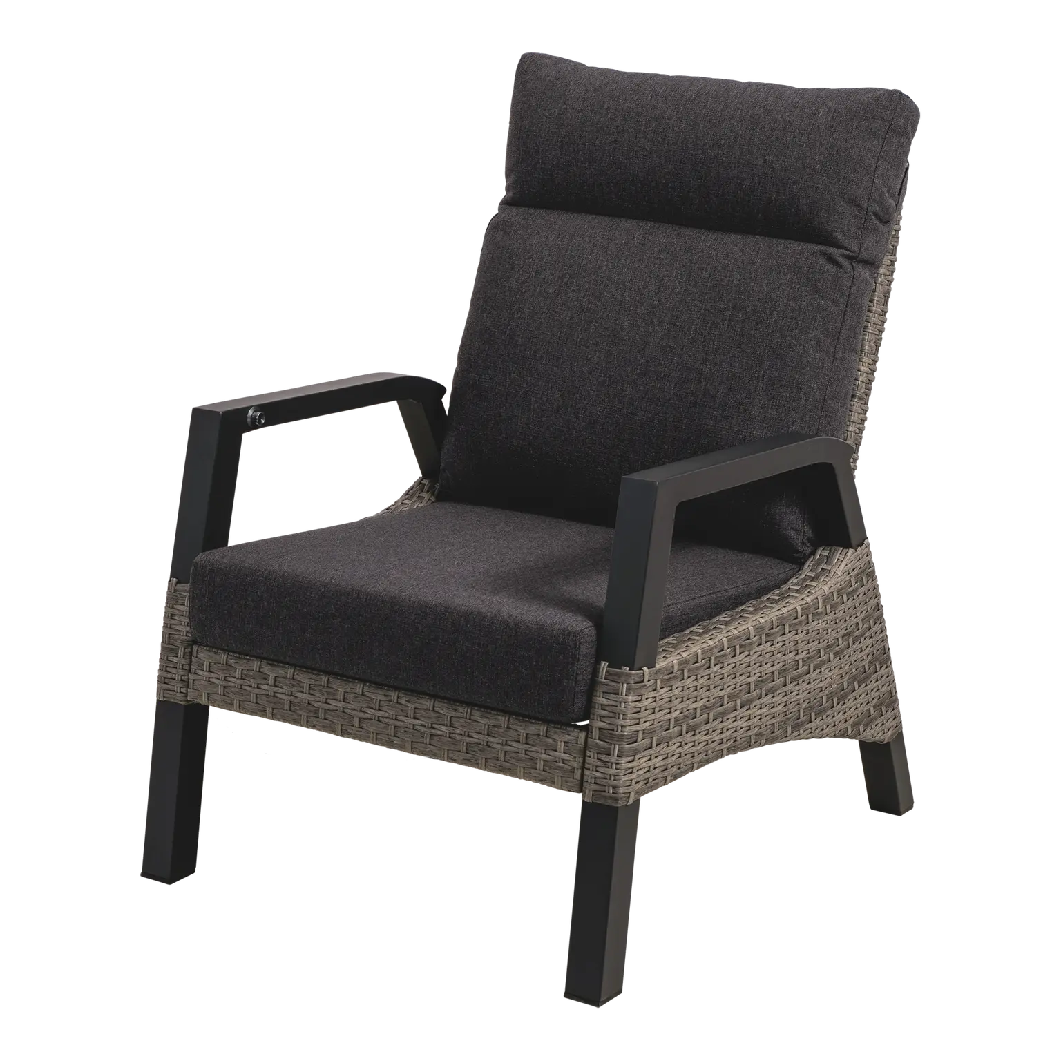74x83x94cm | Aluminium frame mat antraciet | 220gr/m² olefin kussen | Mix maat wicker grijs | Max. draaggewicht: 120kg