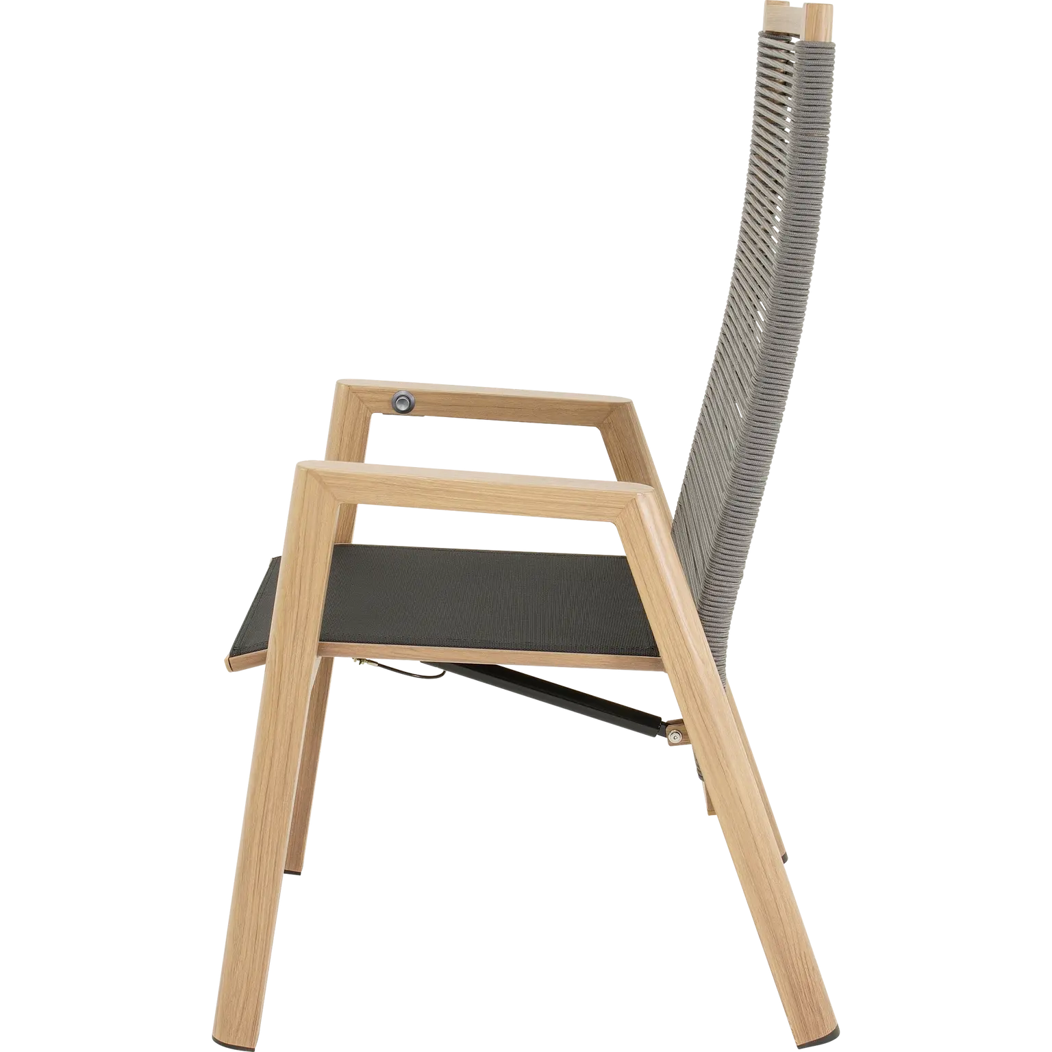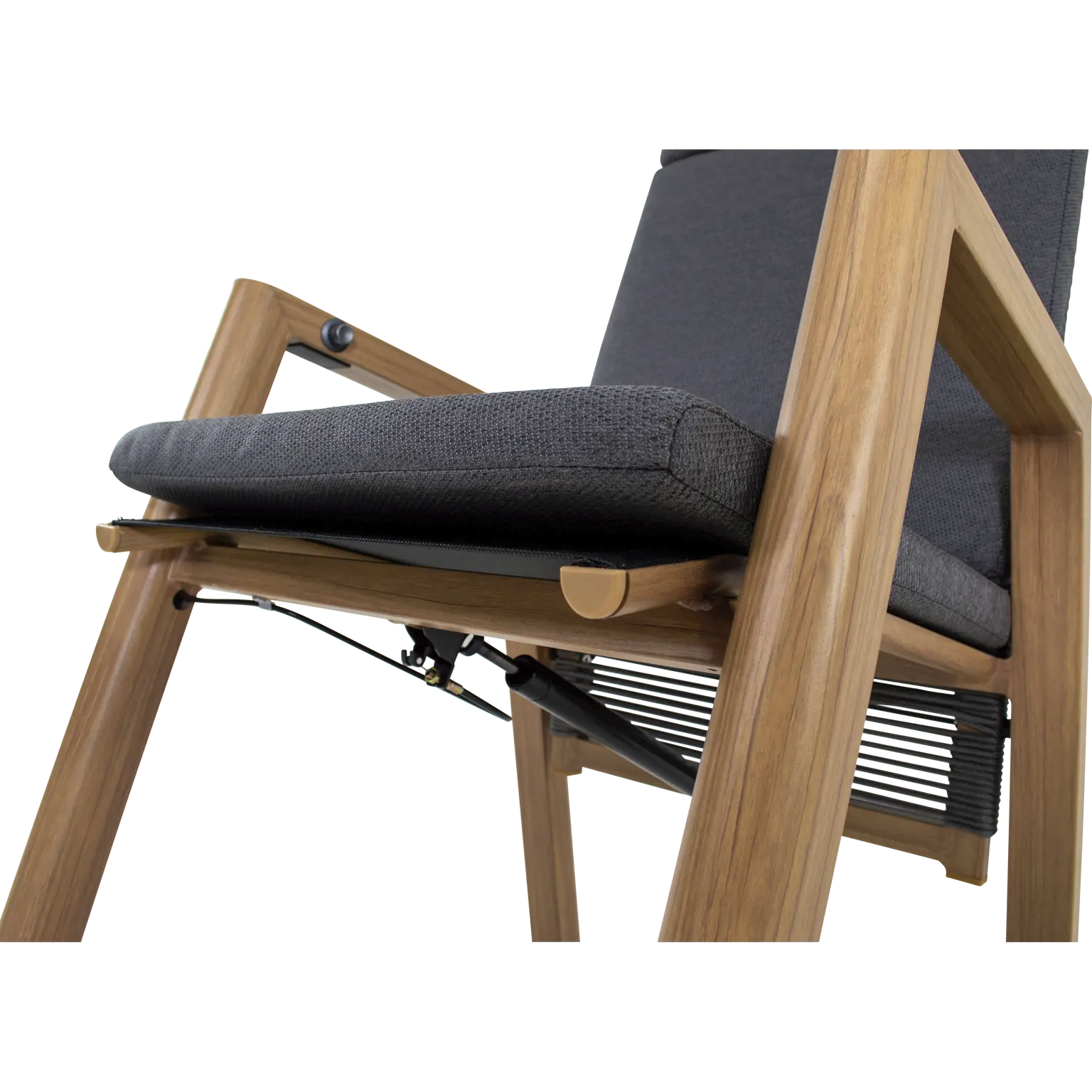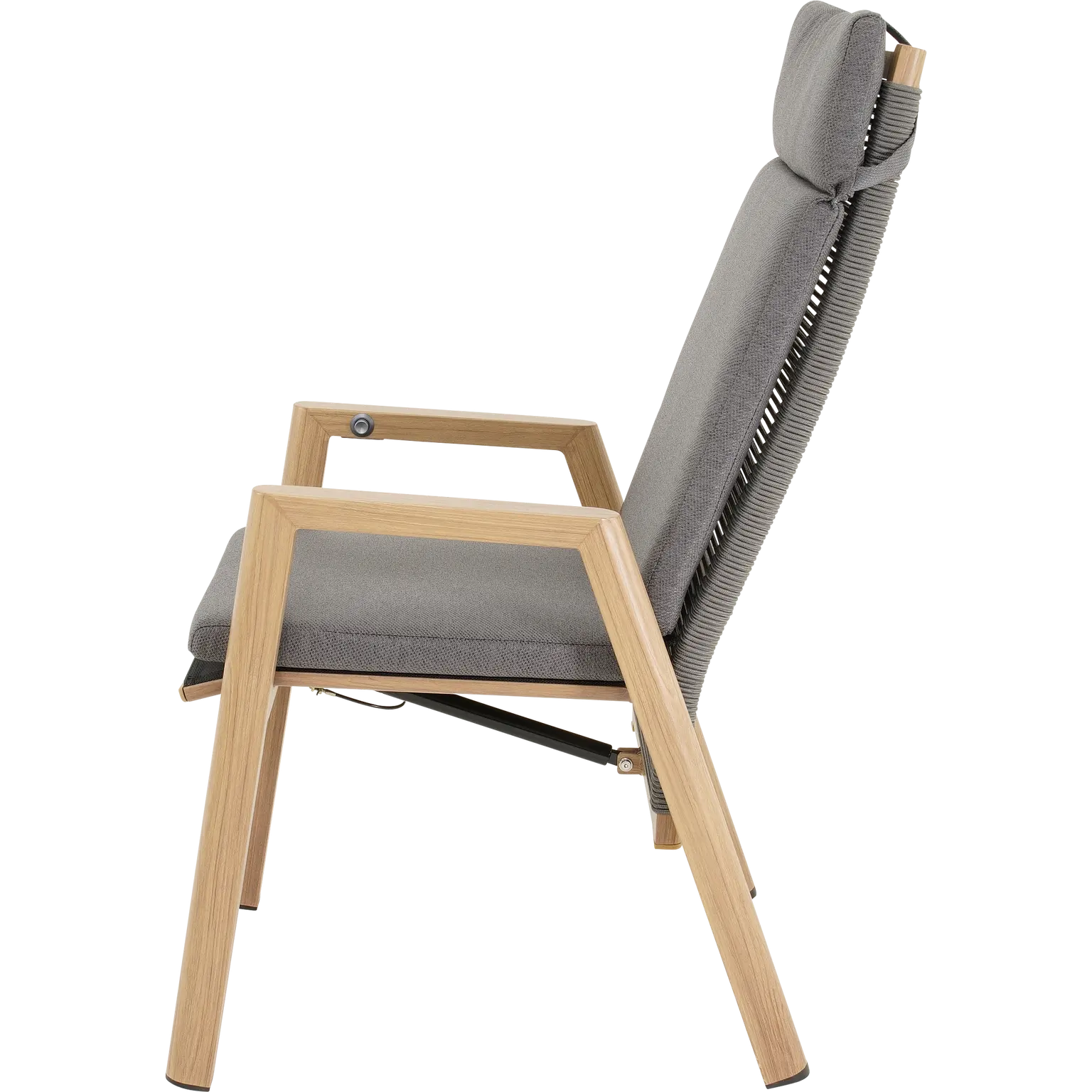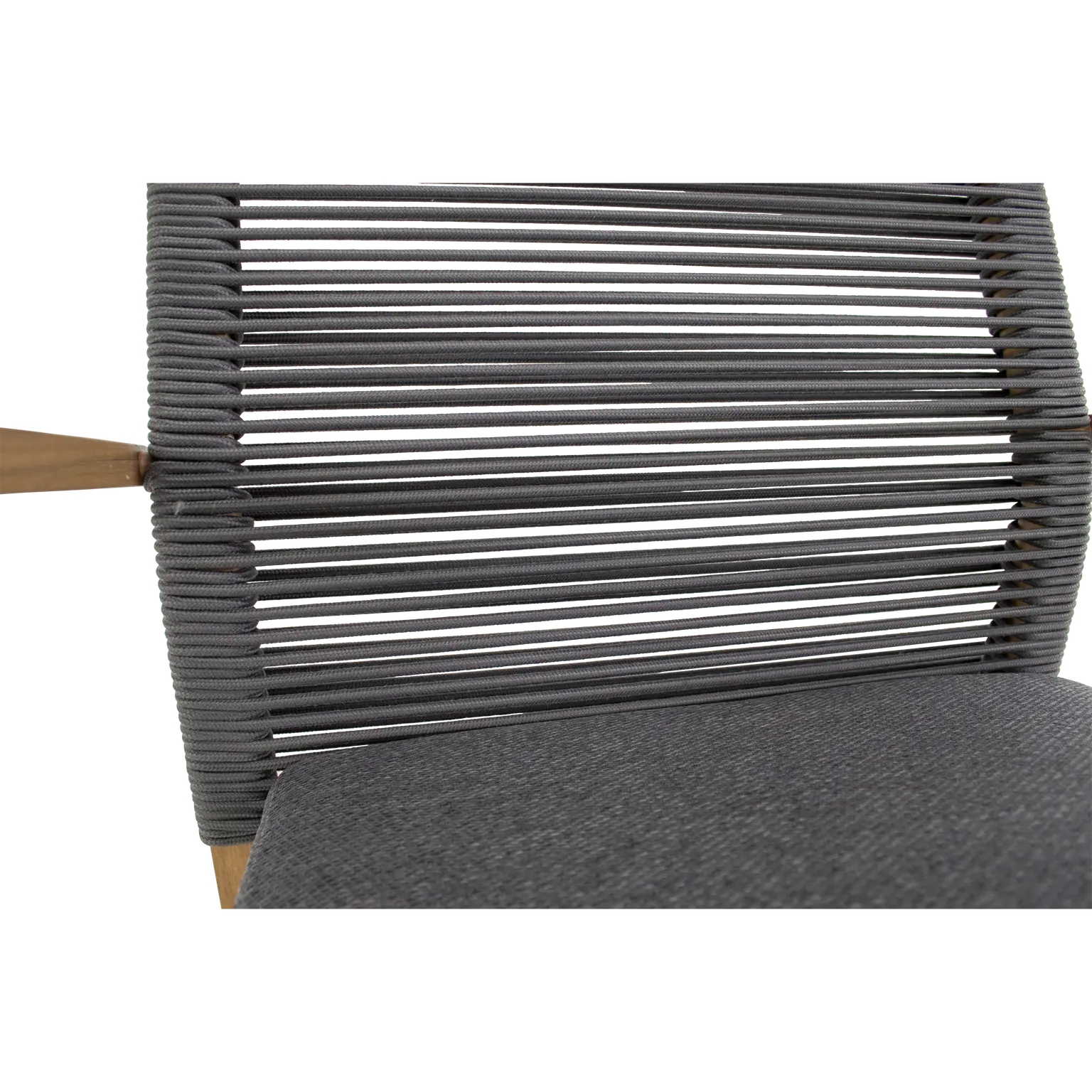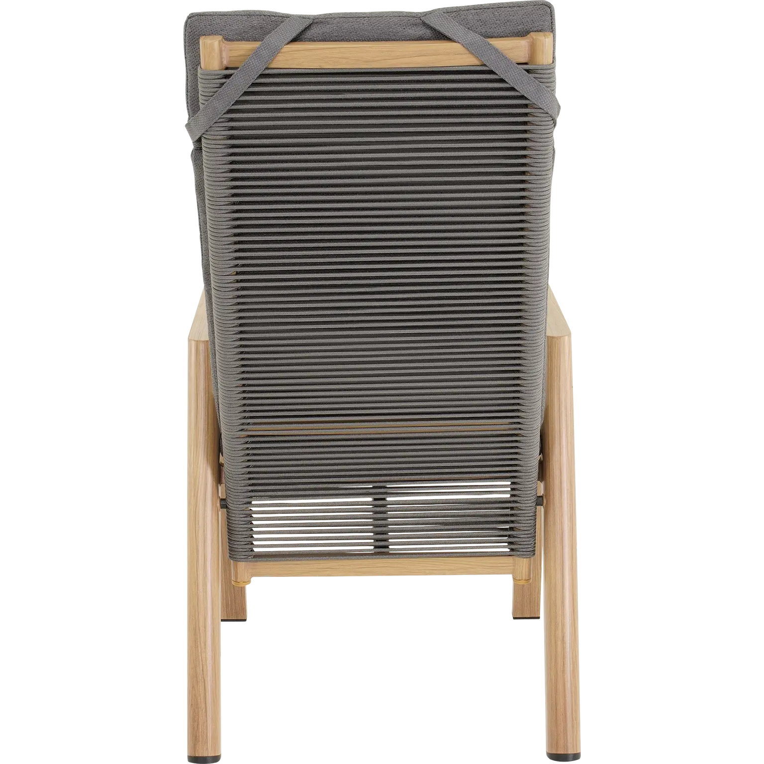 9x65,5x112cm | Aluminium frame houtlook | 270gr/m² olefine kussen | Ø6mm touw kleur donkergrijs | 2*1 zwart textilene | Max. draaggewicht: 120kg