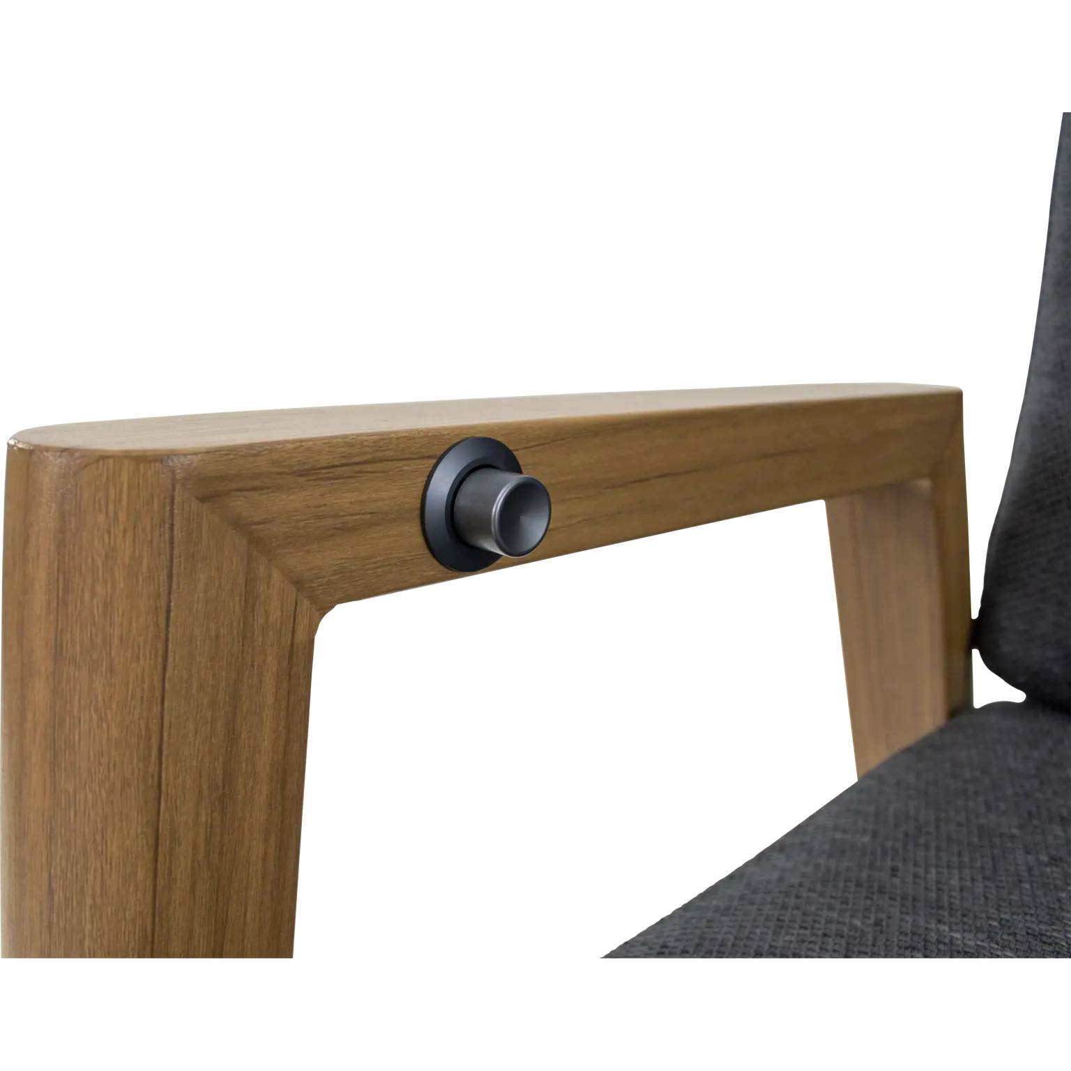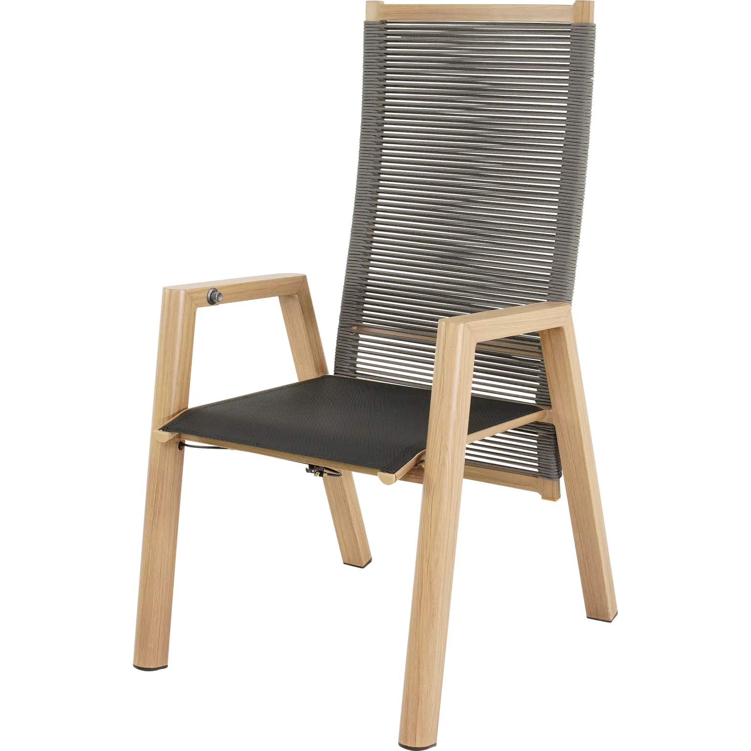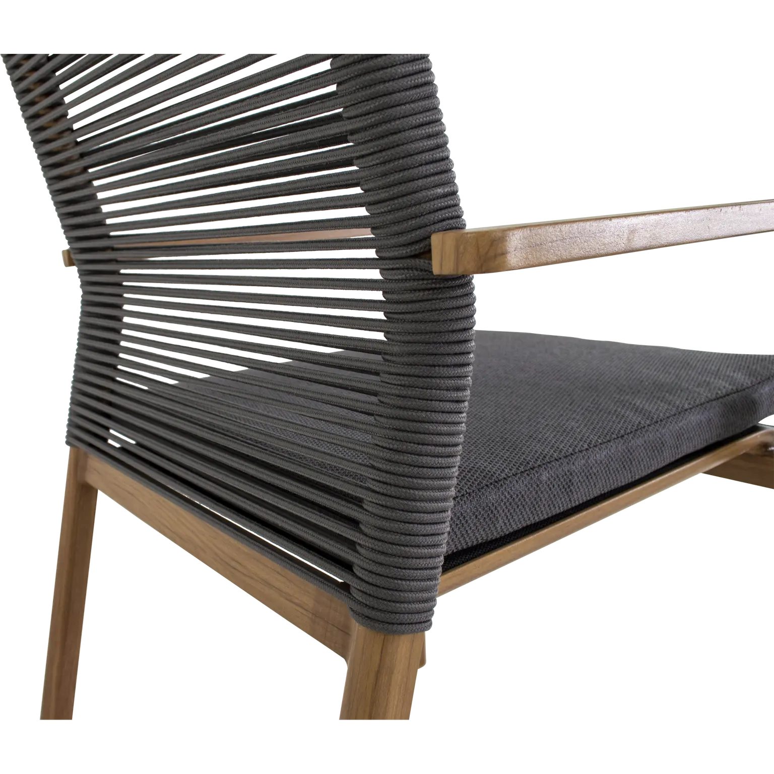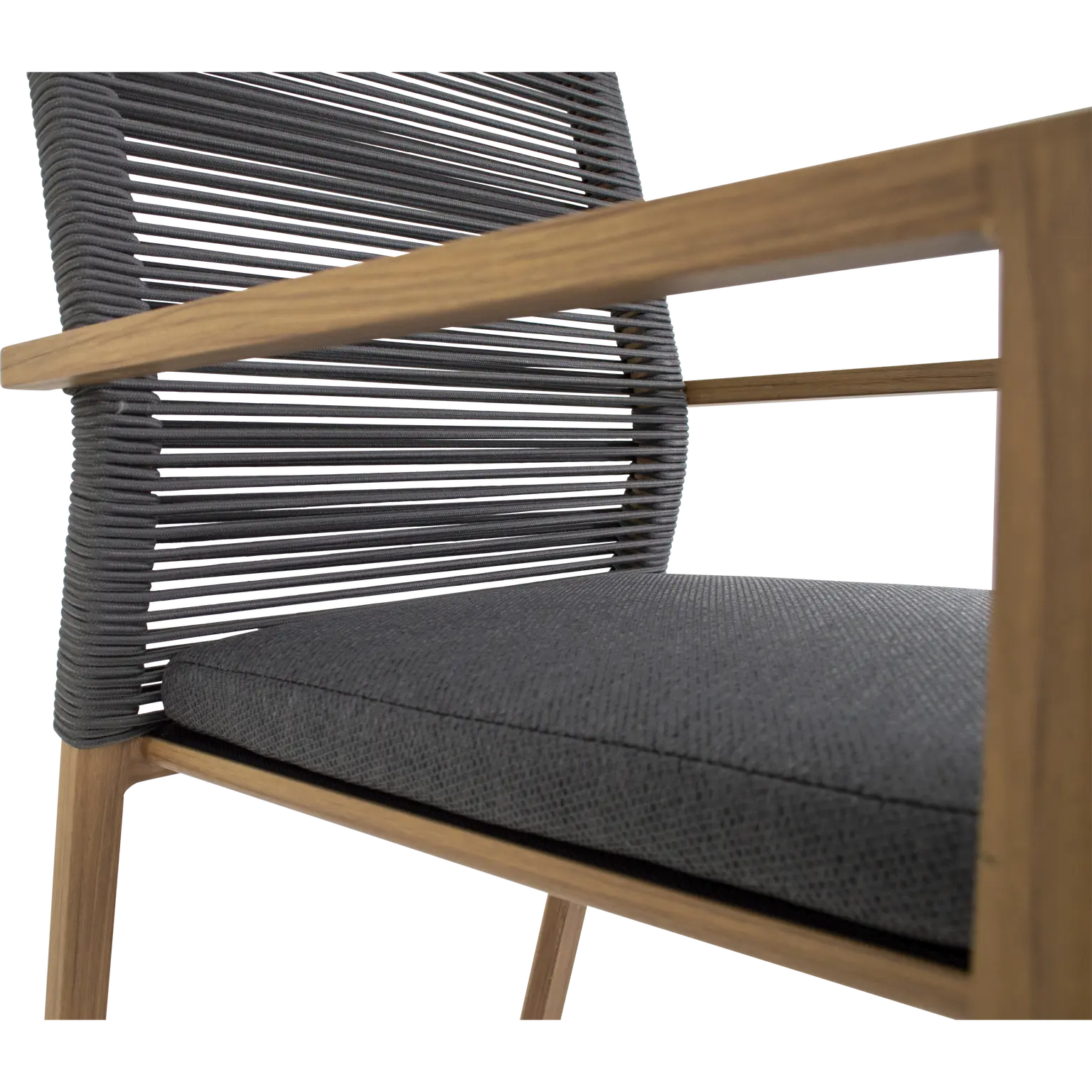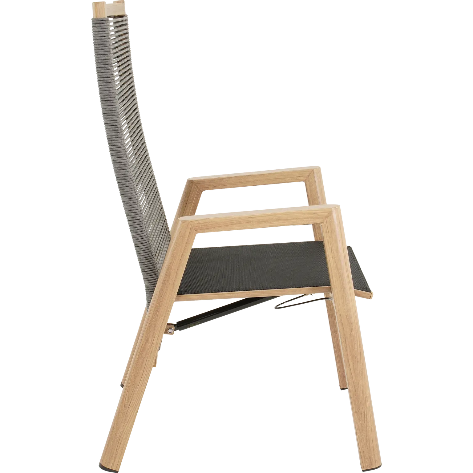 9x65,5x112cm | Aluminium frame houtlook | 270gr/m² olefine kussen | Ø6mm touw kleur donkergrijs | 2*1 zwart textilene | Max. draaggewicht: 120kg
