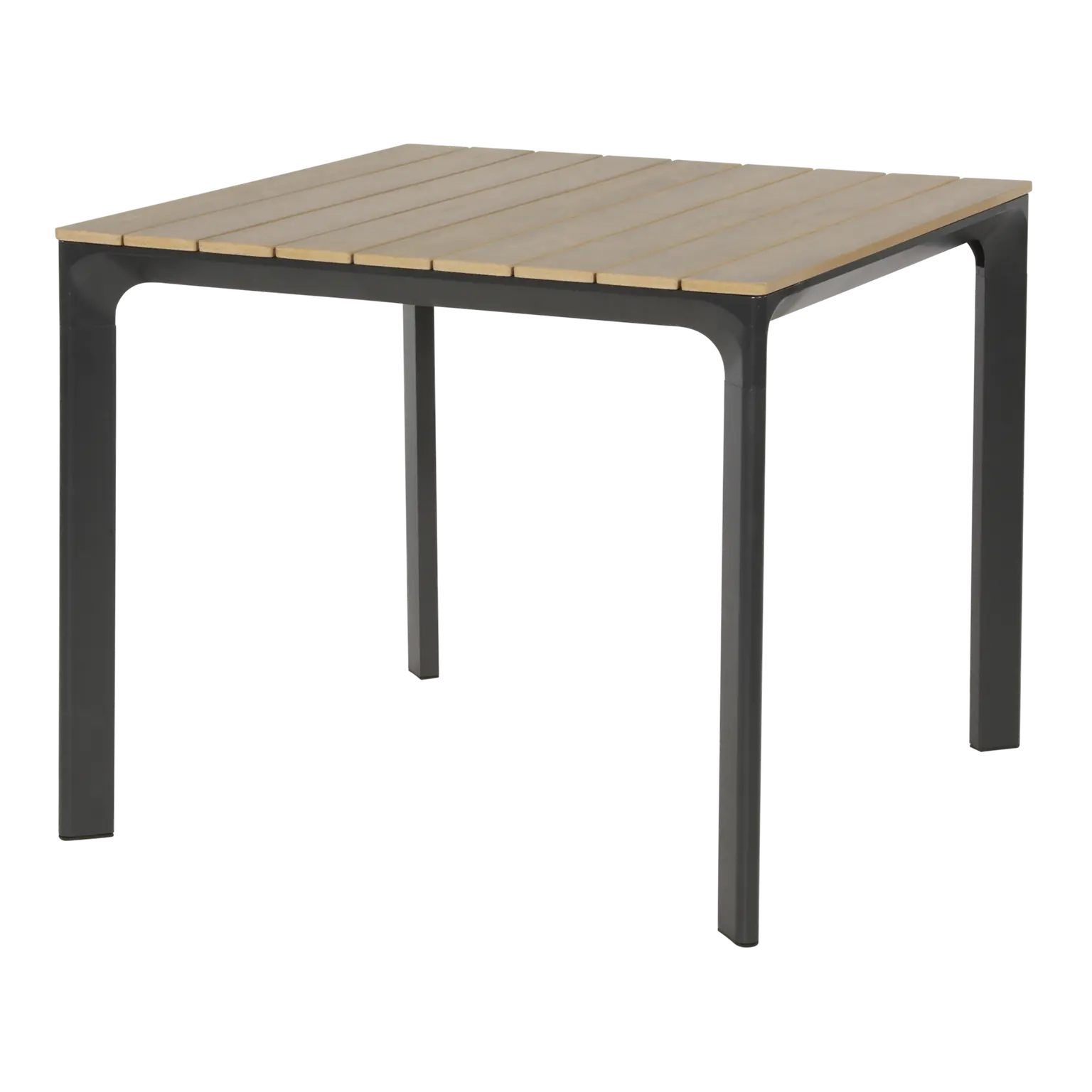 90x90x74cm | Aluminium frame antraciet | Top: polywood teakhoutlook